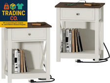 Farmhouse End Table Set of 2,Nightstand with Charging Station, X-Design Side Tab | ✔ Check At Store | $159.99 |