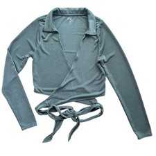 PAC Sun Women's M Teal Green Collar Wrap Crop Top Long Sleeve Tie Waist Boho Eco | ✔ Check At Store | $15.99 |