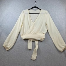Fashion Nova Cream Long Sleeve Wrap Crop Top Blouse V-Neck Tie Waist Size L | ✔ Check At Store | $19.90 |