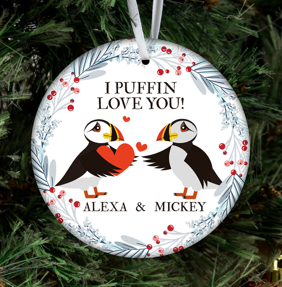 Puffin Couples gift custom Christmas ornament, Boyfriend girlfriend personalized | ✔ Check At Store | $15.52 |