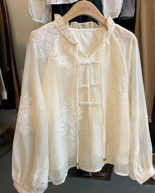 Women's Fashion Embroidered Long Sleeved Shirt for and Sun Protection Top New