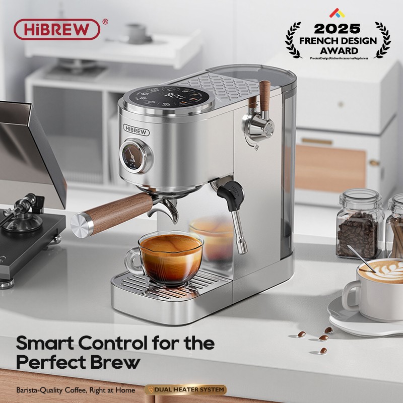 HiBREW G5 Electric Coffee Grinder, 48mm Conical Burr, Compact Travel Design US. HiBREW H13 Semi Automatic Espresso Machine 20 Bar 3 Level Temperature US Plug. HiBREW H10B Compact Espresso Coffee Machine, 20Bar Pressure, Ultra-Slim Profile.