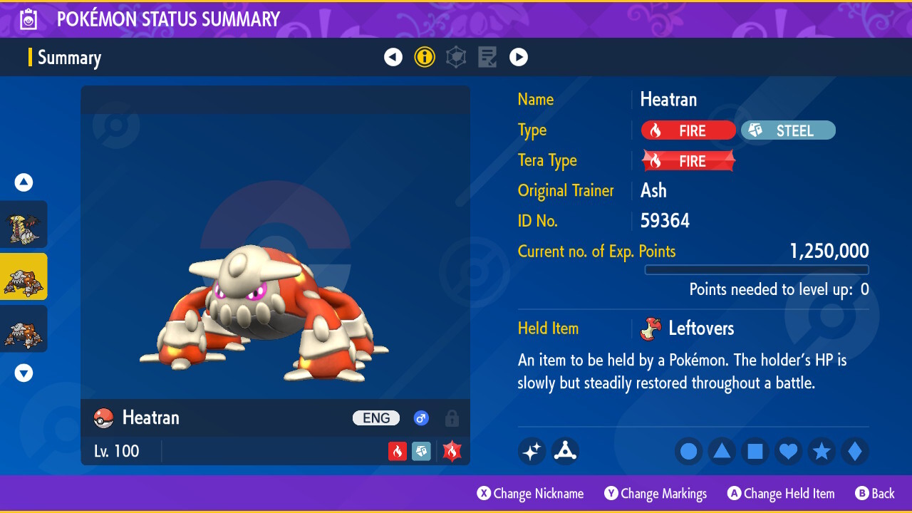 Pokemon Scarlet & Violet Heatran Legend 6IV 🌟Shiny🌟 & Non Shiny Home