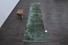 Vintage Turkish Runner Rug 2x9ft Wool Anatolian Handmade Hallway Oushak GREEN