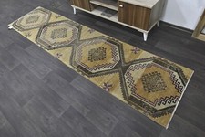 Vintage Turkish Runner Rug 2x9ft Wool Anatolian Handmade Hallway Oushak GOLD
