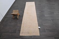 Vintage Turkish Runner Rug 2x9ft Wool Anatolian Handmade Hallway Oushak BEIGE