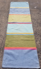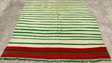 This vintage traditional handmade striped kilim floor rug carpet is a beautiful and unique addition to any home. Measuring 231x170 cm, this multicoloured rug is crafted with intricate hand-knotted detailing, showcasing the traditional designs and colours of the region. The timeless beauty and craftsmanship of this rug make it a stunning focal point in any room, adding a touch of history and authenticity to your decor. Perfect for antique collectors or those who appreciate traditional artistry in their design choices.