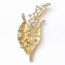 Brooch Lily of The Valley White Pearl Flower Gold Leaves Elegant Sparkle Pin | ✔ Check At Store | $7.99 |