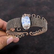 Women Day Gift Rainbow Moonstone Copper Mom Gift Wire Wrapped Adjustable Cuff | ✔ Check At Store | $35.10 |