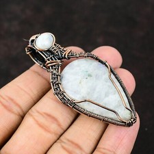 Women Day Sale Rainbow Moonstone Copper Gift For Mom Wire Wrapped Pendant 2.48" | ✔ Check At Store | $26.70 |