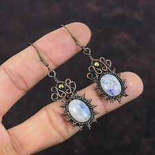Rainbow Moonstone Copper Mum Gift Wire Wrapped Drop/Dangle Earrings 2.56" | ✔ Check At Store | $27.00 |