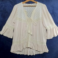 Fairy Grunge TopWomens M Cream Cotton Crochet Fringe Kimono Boho Beach Feminine | ✔ Check At Store | $24.76 |