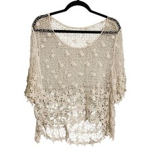 Crochet Sweater Womens Medium Cream Open Knit Fishnet Fairy Grunge Beach Boho | ✔ Check At Store | $24.54 |