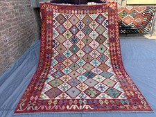 6x8 Afghan Hand-Woven Kilim Rug, Colorful Geometric Diamond Pattern, Wool Rug | ✔ Check At Store | $350.00 |