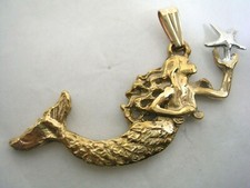 MERMAID PENDANT YELLOW GOLD TONED BRASS DIAMOND CUT FINISH & SILVER STARFISH | ✔ Check At Store | $21.95 |