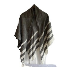 NWT! Nordstrom Caslon Triangle Fringed Grey Striped Winter Scarf/ Shawl