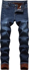 Men's Winter Autumn Thermal Fleece Lined Slim Fit Thicken Warm Stretch Denim Jea