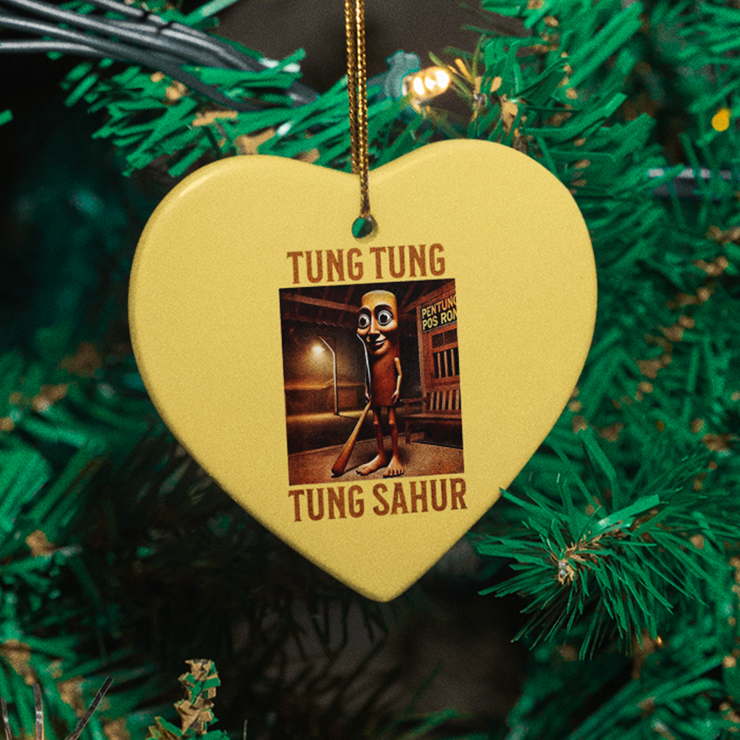 Tung Tung Sahur Ceramic Christmas Ornament - Brainrot Tribute Xmas Keepsake | ✔ Check At Store | $13.99 |