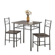 Grey Dining Table Set 3-Piece Kitchen & Office Desk w/ 2 Chairs, Metal & Wood | ✔ Check At Store | $65.98 |