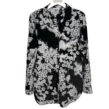 Calvin Klein Shirt Blouse Button Up Med Gray Black White Cherry Blossom Career | ✔ Check At Store | $23.95 |