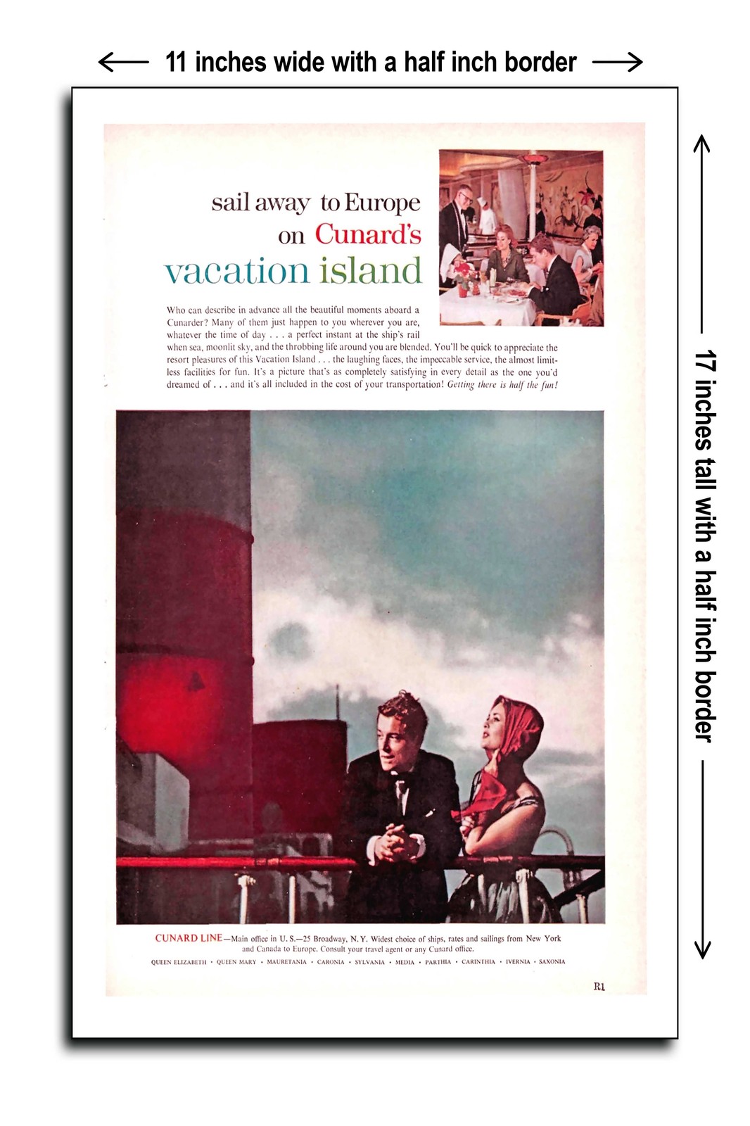 1961 Sail Away to Europe on Cunard's Vacation Island - 11x17 Poster | ✔ Check At Store | $19.95 |