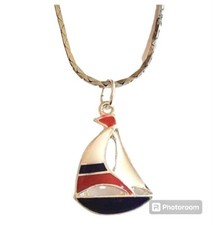 Silver Sailboat Necklace Nautical Island Boat Sailing Red White Blue Plated 18"