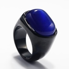 Blue Opal Stone Black Signet Ring Stainless Steel Men Women Jewelry Size 7-13 | ✔ Check At Store | $13.98 |