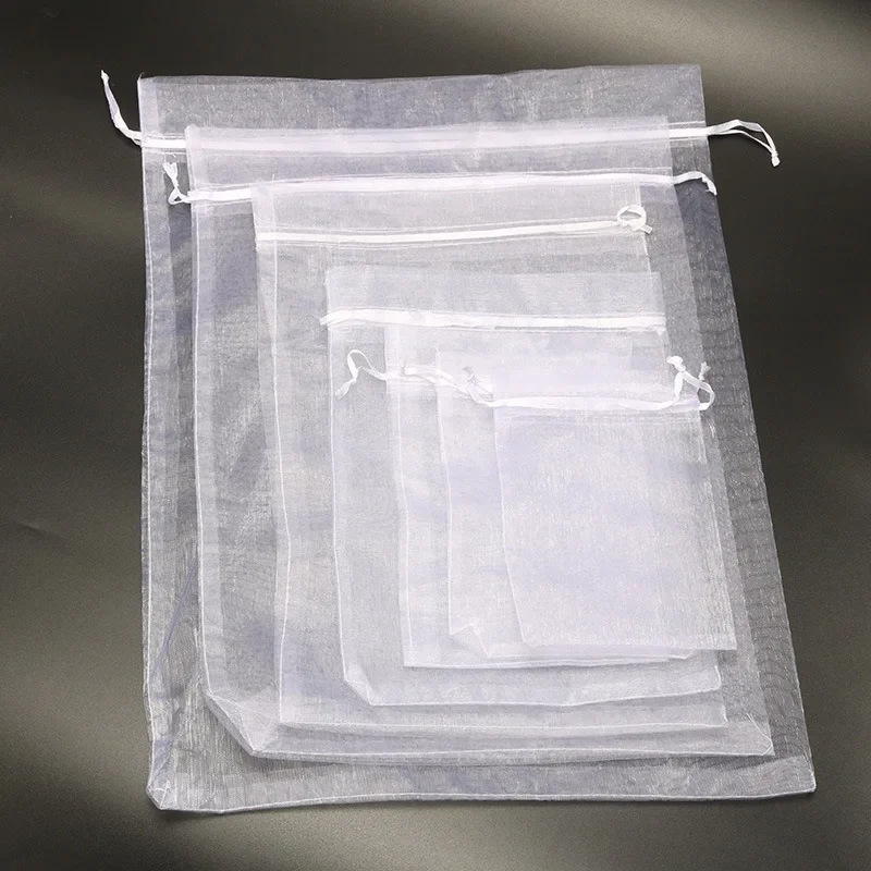 50PCS 5x7 7x9 9x12 10x15 11x16 13x18 15x20 17x23cm White Organza Bags Christmas Halloween Birthday Party Wedding Gift Box Bags