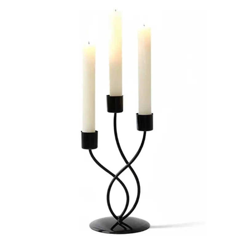 AT43-Candlebra-Black Metal 3- Candlestick Holder-Elegant Design For Luxurious Table Centerpiece Candelabra