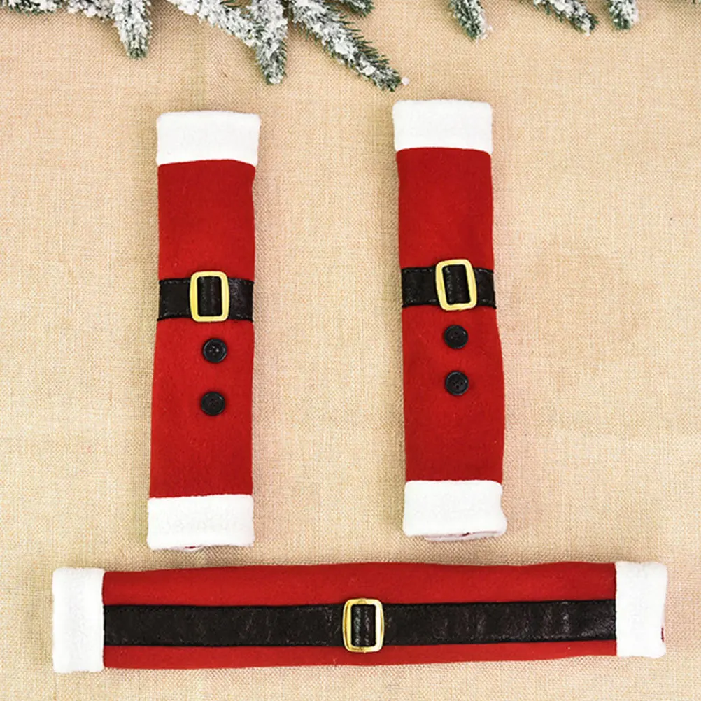 3Pcs Christmas Door Handle Covers Soft Knitted Fabric Kitchen Appliance Handle Protector Fridge Oven Microwave Cover Xmas