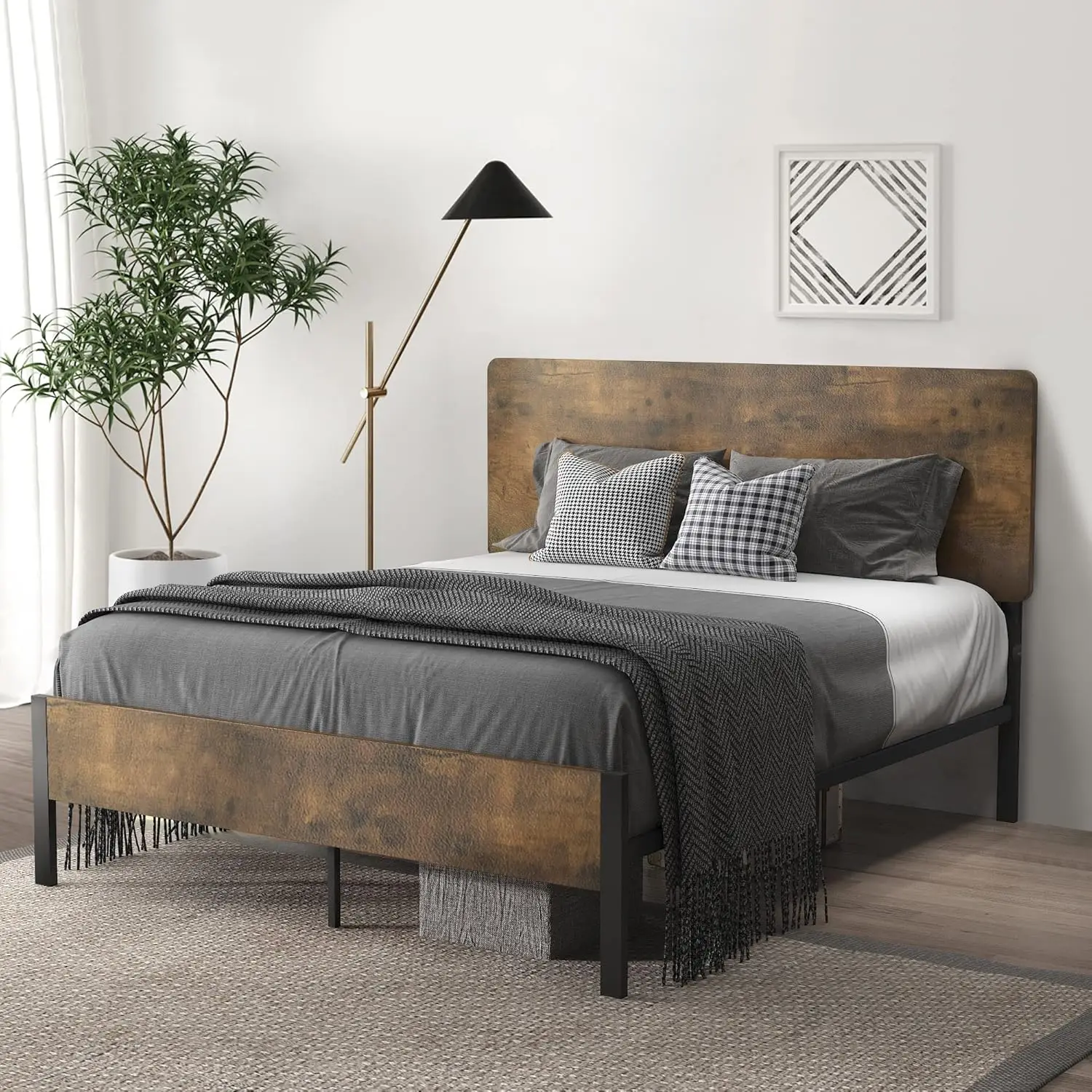 Full Size Metal Platform Bed Frame with Victorian Vintage Headboard and Footboard/Mattress Foundation/Under Bed Storage