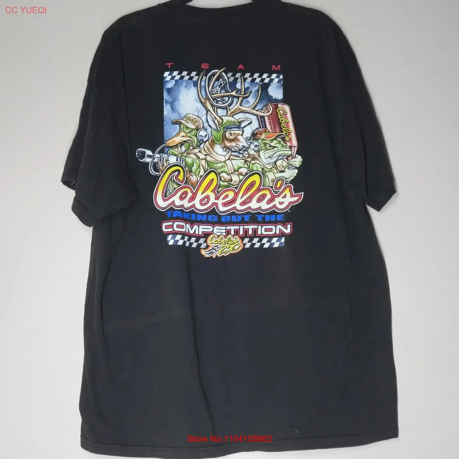 VTG 90s Cabela s 250 Animal Taking Out The Competition Racing T Shirt Size 2XL vintage Washed fashion Stretched graphic
