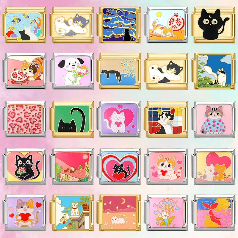 Gold Color 26 English A-Z Capital Letters Shiny Zircon Italian Charm Link Fit 9mm Stainless Steel Bracelet Women Men DIY Making