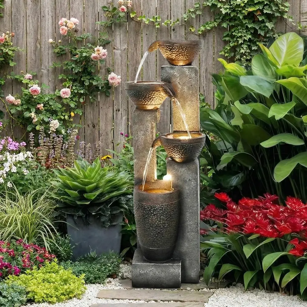 40 Inch LED Lighted Polyresin Outdoor & Indoor Water Fountain for Patio, Deck, Yard
