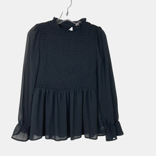 Smocked front and back. - Sheer sleeves and Peplum Skirt. Length: 24".