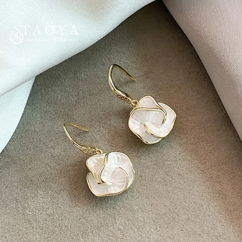 French Romantic Elegant White Enamel Camellia Pendant Flower Earrings 2024 New Fashion Jewelry Accessories For Women‘s Christmas