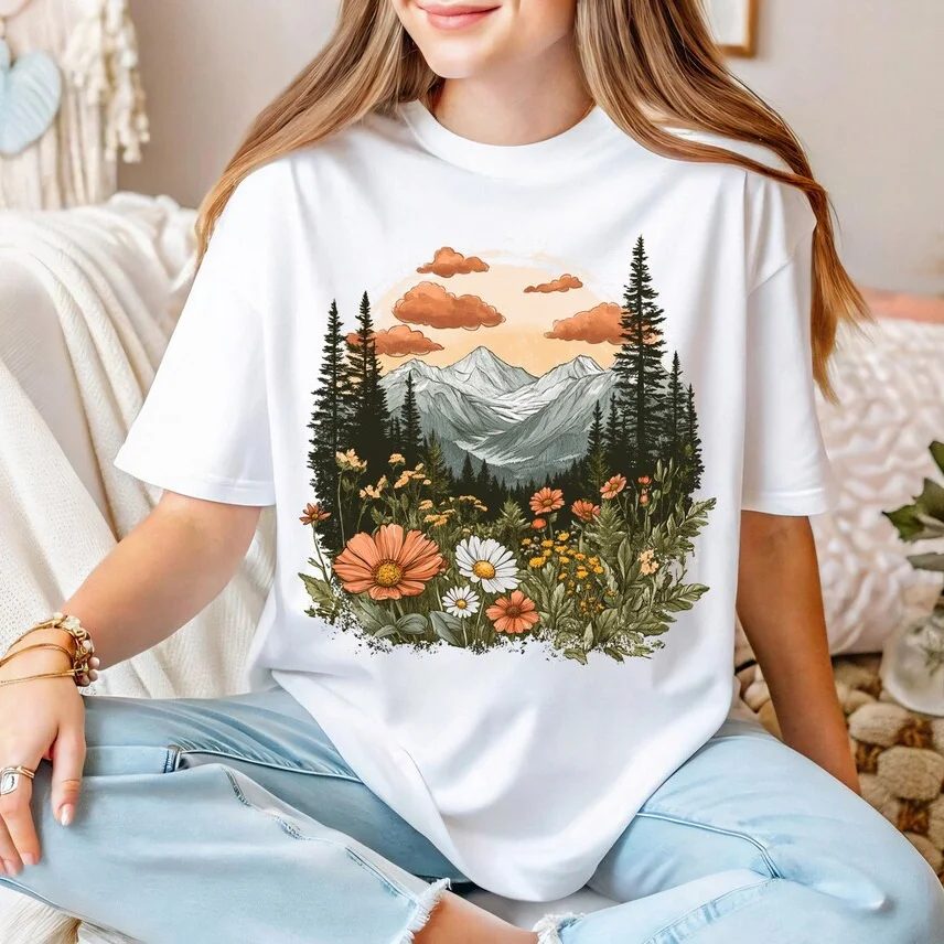 Mountain Wildflower Shirt, Mountain Camp Shirt, National Park Shirt, Nature Lover Tee, Nature Adventure Shirt, Camping Tee