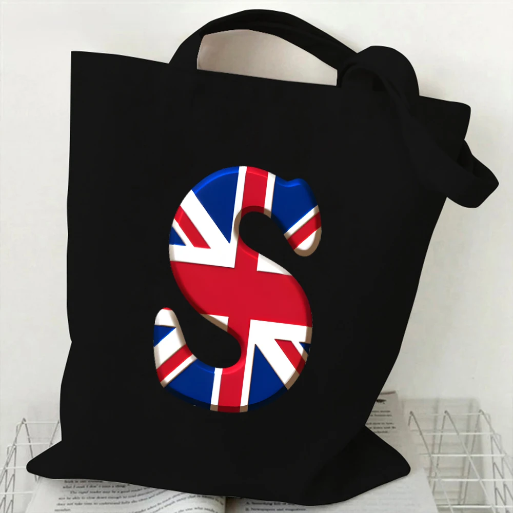 A-Z 26 Letter Canvas Tote Bag for Women Handbag UK Flag Graphic Y2K Aesthetics Reusable Tote Bag Female Shoulder Shopping Bag