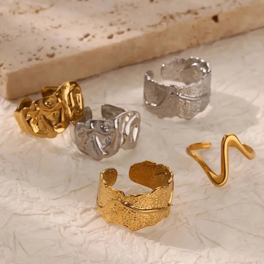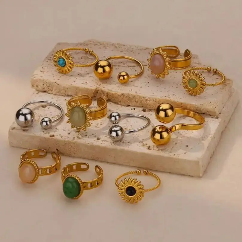 VIntage Natural Stone Bead Ring for Women Men Stainless steel Ring Open Adjustable Punk Party Couple Aesthetic Jewelry Gift 2024