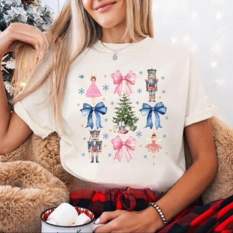 Merry Christmas Lovely Nutcracker Coquette Lets Get Crackin Retro Christmas Gift Shirt Regular Crewneck Tops Shirt Short Sleeve