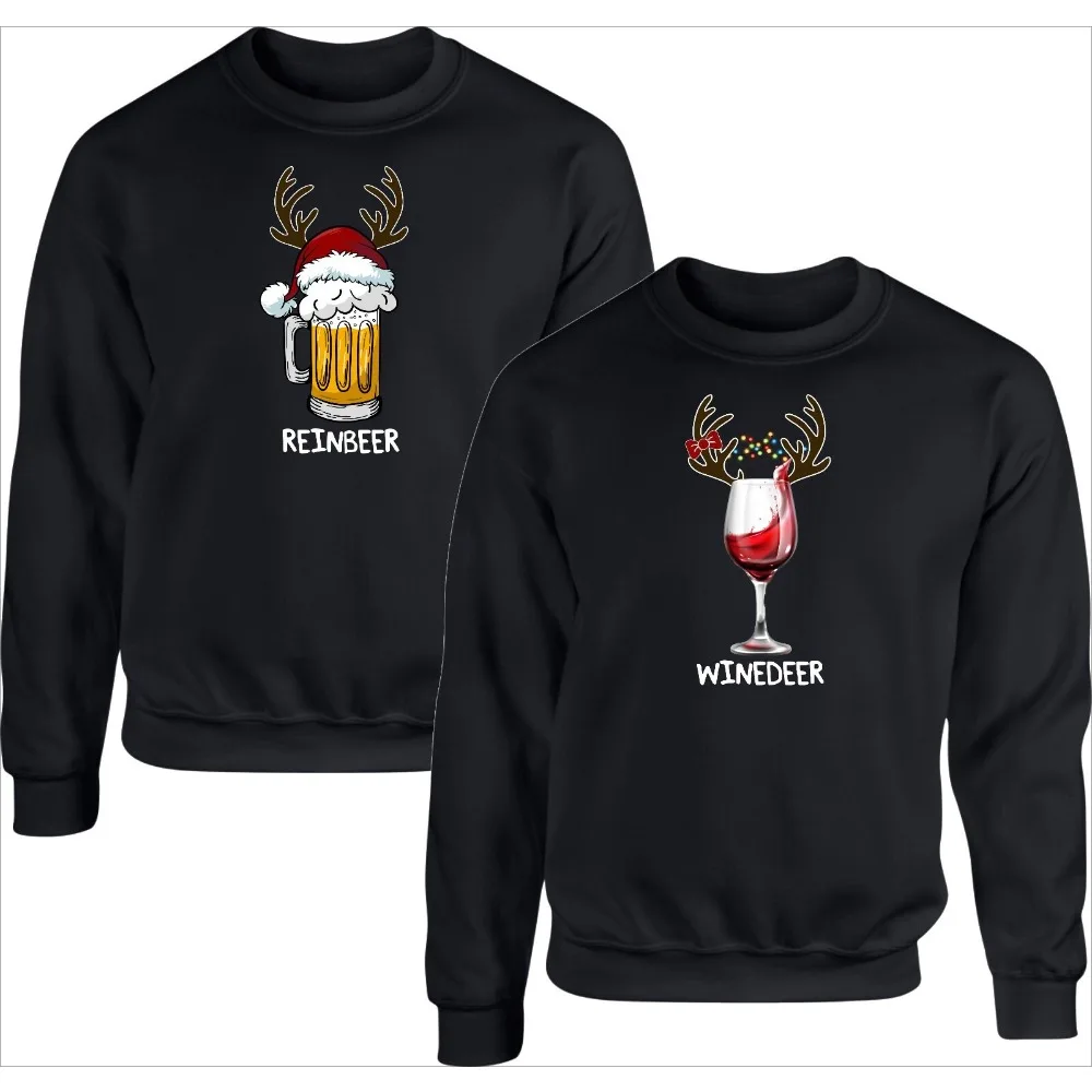 Christmas Winedeer Reinbeer Jumper - Funny Couple Sweatshirt Unisex Winter Warm Tops Men Women Festive Xmas Gift Clothes Women