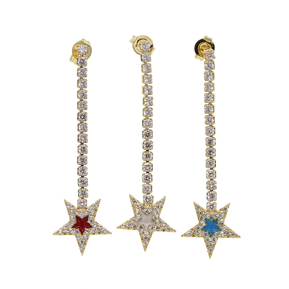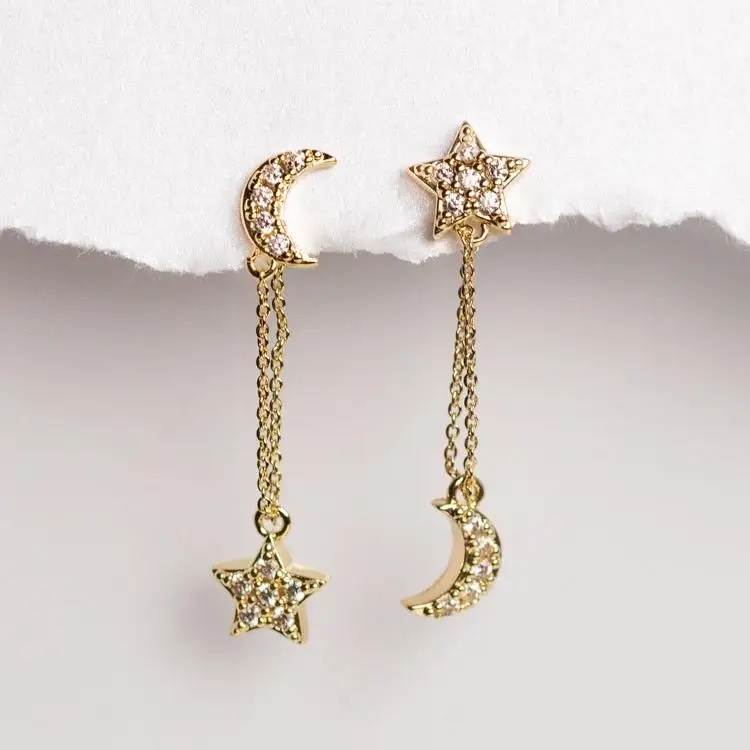 2024 Christmas Gift New Fashion Jewelry Micro Paved CZ Small Moon Star Charm Tassel Drop Earring
