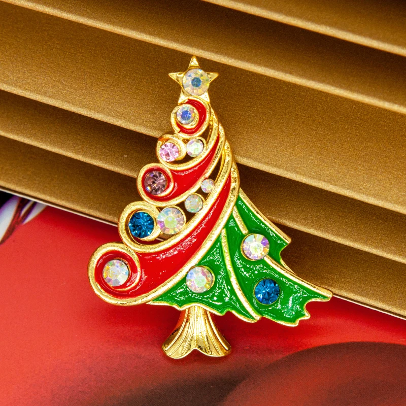 2024 New Red Green Christmas Tree Brooches Rhinestone Enamel Fashion Pins For Women Men Collar Hat Coat Suit Wedding Party Gifts