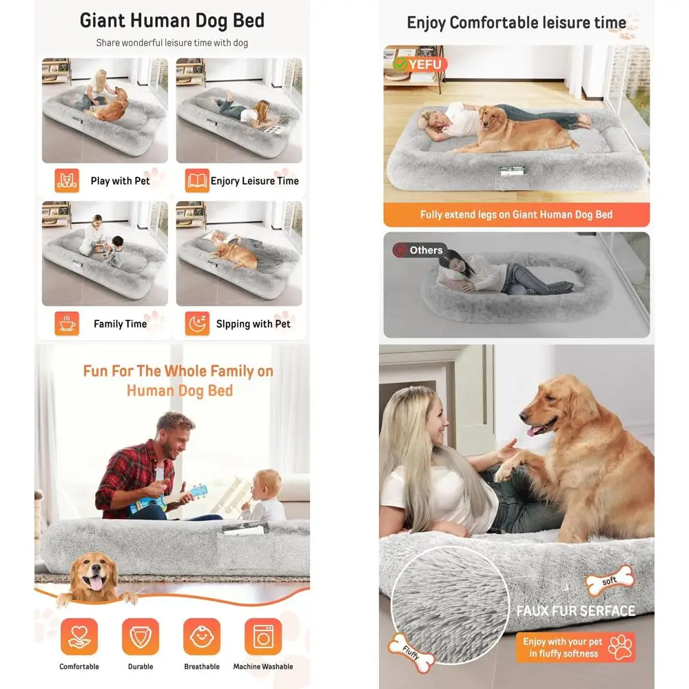 Large Human-Sized Dog Bed 79x45x12 - Comfortable, Washable Foam Bed for Humans and Pets in Light Grey