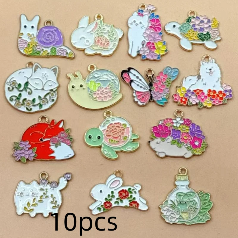 10pcs Enamel Floral Cats Charms of Drop Earring Flower Cat Pendant for Making DIY Keychain Necklace Jewelry Accessories