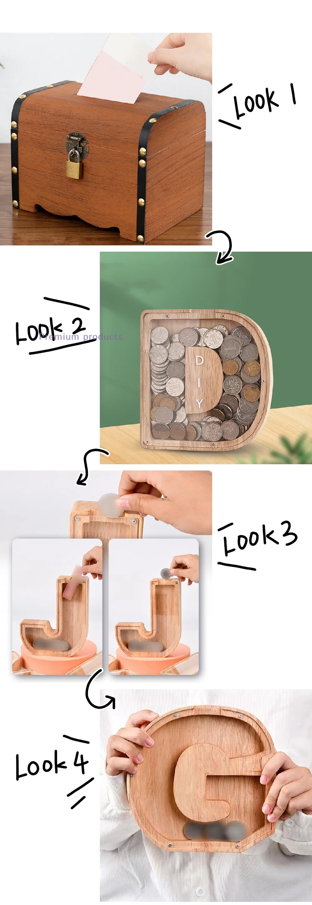 Antique Wooden Storage Chest with Lock, Treasure Box for Home Decoration, Piggy Bank Organizer Case