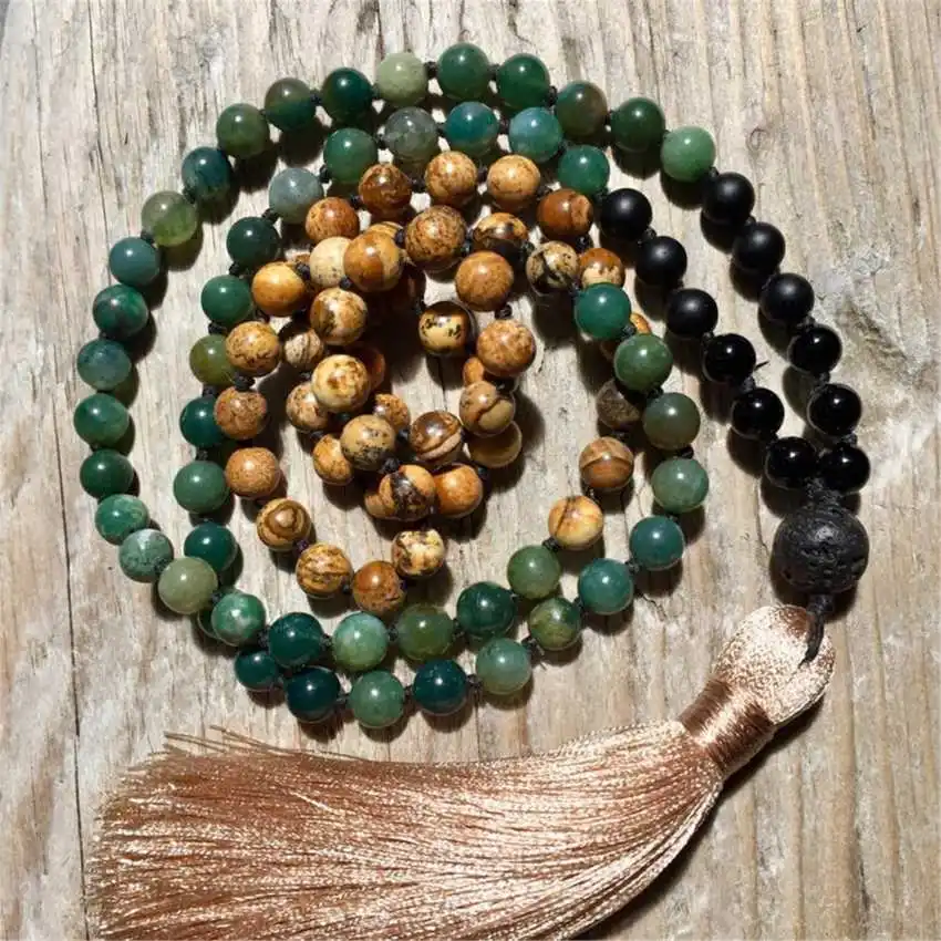 Boho Picture Jasper & Green Aventurine 108 Mala Bead Necklace with Lava Rock & Copper Tassel Yoga Jewelry https://online.rapidodeals.com/compare/detail/axs/1005011943190761?k=Jewelry from $11.90 See Details