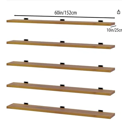 5 Tier Long Floating Shelf 59.84 X 11.81in Solid Wood Large Bookcase with Metal Bracket Suitable for Kitchen Bathroom Coffee Bar