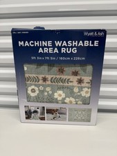 The Wyatt & Ash Machine Washable Indoor Rug is a stylish and practical addition to any home. With a rectangular shape and a size of 5 x 7 ft, this area rug is perfect for adding a pop of green color to a room. Made of durable polyester material, this rug i...
