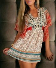 EMBELLISHED Mini Dress Top / Cover-Up. Color: Red / Multicolor.